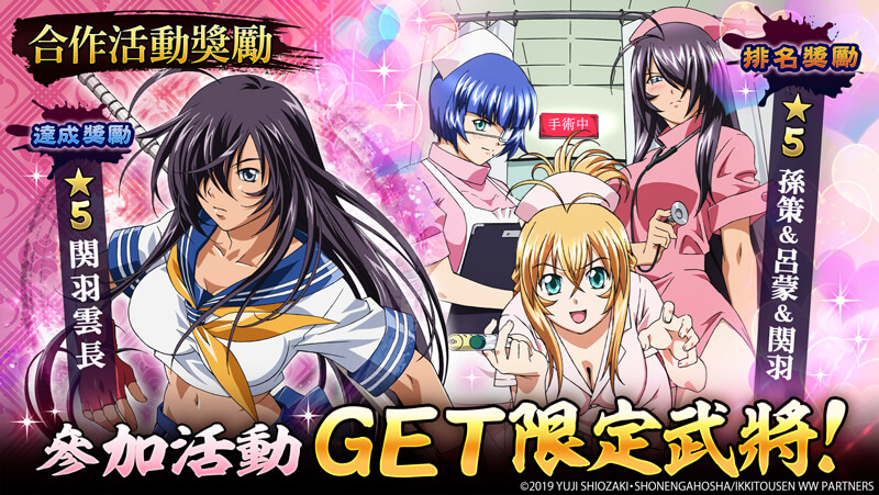 收集霸王點數獲得合作武將!排名獎勵中可獲得護士服裝的「孫策&呂蒙&関羽」!
