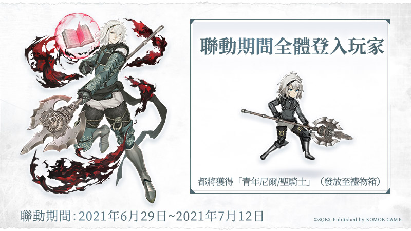 聯動期間,登入的所有創造主們都會在禮物箱收到「青年尼爾/聖騎士」。
