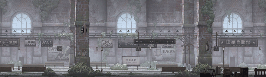 車站大廳 - 災難倖存者們的聚集處。為了休息,大家在這裡設置帳篷,好渡過一個個擔心受怕的夜晚……
