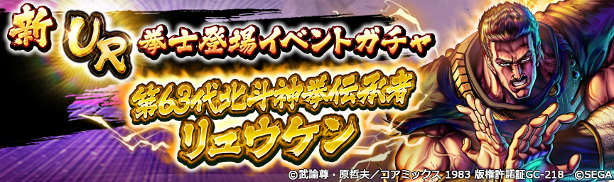 還有北斗四兄弟偉大的師傅「第63代北斗神拳傳承者 龍拳」登場的“新UR拳士登場活動轉蛋”也同時舉辦。