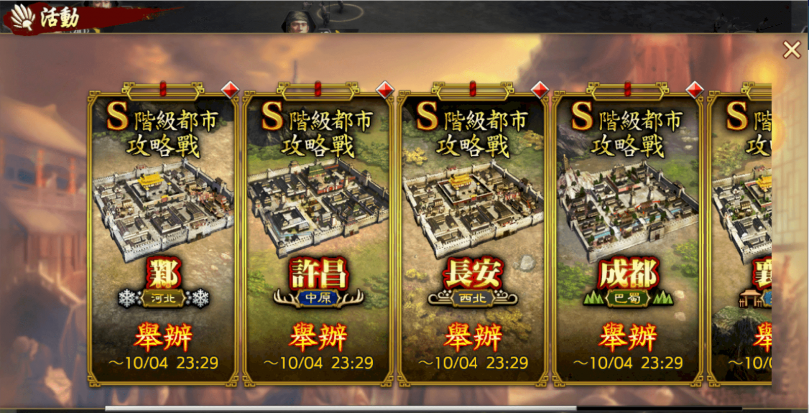 提到統一中原,當然免不了的是攻打各個都市了。因此【三國志 霸道】在開放 S 階級都市之前,預先開始期間限定 S 階級都市攻略戰活動,讓各位玩家能提 前享受 S 階級都市的攻佔謀略與軍團夥伴團隊合作的樂趣。
