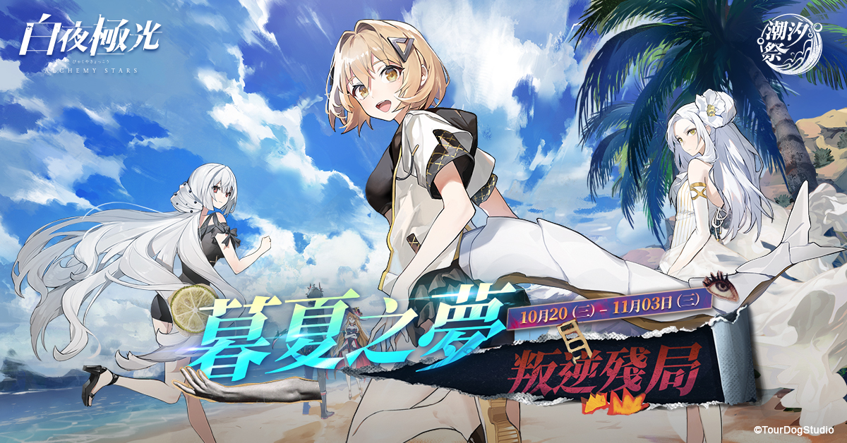 由 TourDogStudio 研發,Gamamobi 遊戲平台代理的超美學連線戰略RPG手遊《白夜極光》,在眾多玩家的熱烈支持下,註冊衝破300萬人次,今(10/20)宣佈進行「潮汐祭.暮夏之夢」版本更新,除了限時開啟的全新關卡,還有「剉冰魂」趣味新玩法,及「拜里厄」與「弗勞爾」兩位新角色限定登場,並且舉辦許多豐富的活動,導航員們快來一探究竟吧!
