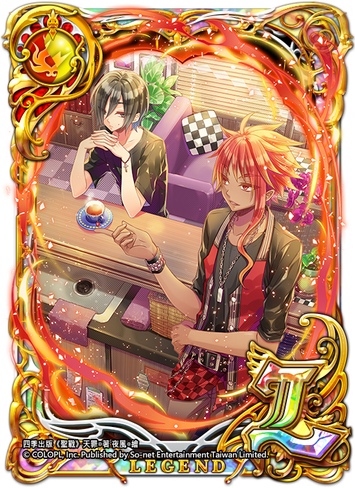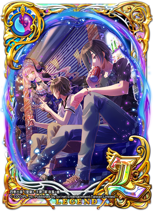- 活動內容:活動期間內開放《聖戰》合作關卡【重合的因果~血色丹空~】,玩家可藉由活動獲得【神話生命體 龍嘯塵】及【墮星之夜 愛莉‧赫爾菲斯】。
