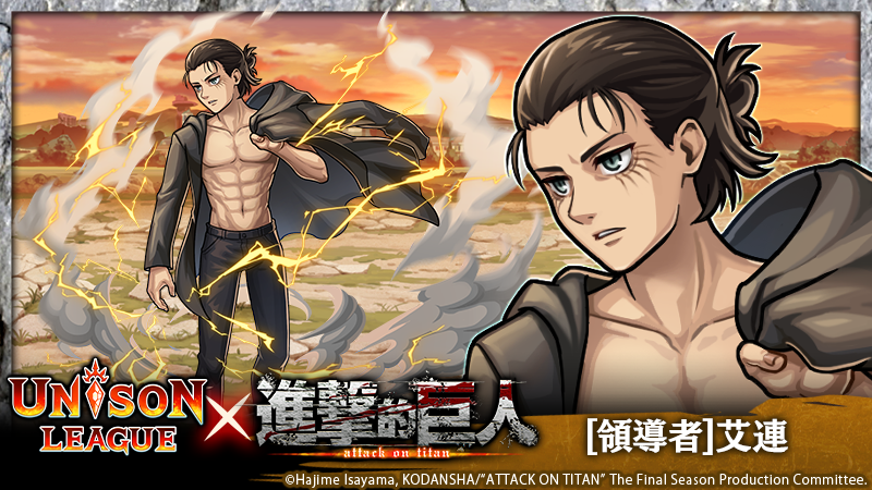 Ateam Entertainment Inc.(本社:愛知縣名古屋市,社長:中內之公)旗下直營的新感覺即時戰鬥RPG《UNISON LEAGUE》在日前與電視動畫《進擊的巨人》 展開的合作活動已進入後半階段。10月25日(一)維護結束後活動已煥然一新,並追加了《進擊的巨人》The Final Season的合作角色、造型與全新任務。