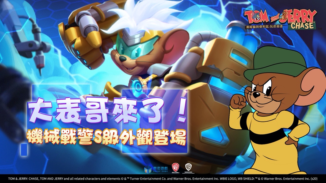 傑利的大表哥來了!改編自奧斯卡經典動畫Tom and Jerry,超高人氣的歡樂對戰遊戲《湯姆貓與傑利鼠:玩命追逐》今(11/1)日公開全新角色「馬索爾」及S級外觀「機械戰神」,悍勇無懼的他準備稱霸追逃戰場,快登入遊戲體驗大表哥的威力!
