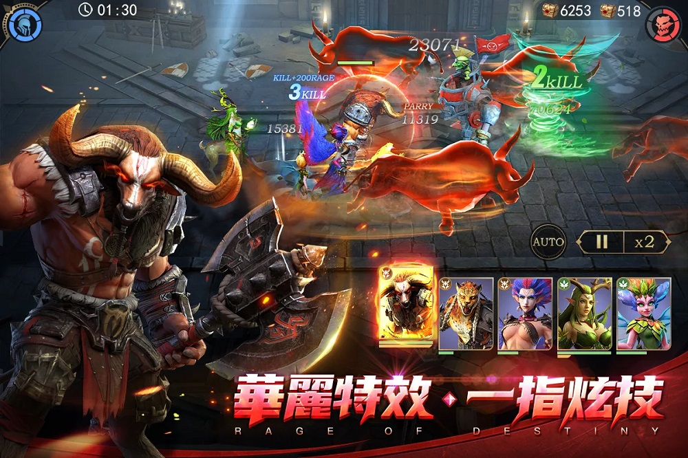 有別於市面上的直螢幕放置手遊,《命運之怒》為了完美呈現全3D模組所帶來的極致戰鬥美學,特別採用橫向螢幕來運行遊戲,將立體戰鬥的視覺表現發揮至極致,大幅提升玩家的體驗感。在英雄造型、關卡魔物,以及擬真場景的製作上,更運用次世代的建模技術,精緻細膩的處理每一個戰鬥細節,精心打磨3A級的美術表現,讓玩家隨時隨地都能享受一場戰無止境的視覺饗宴!