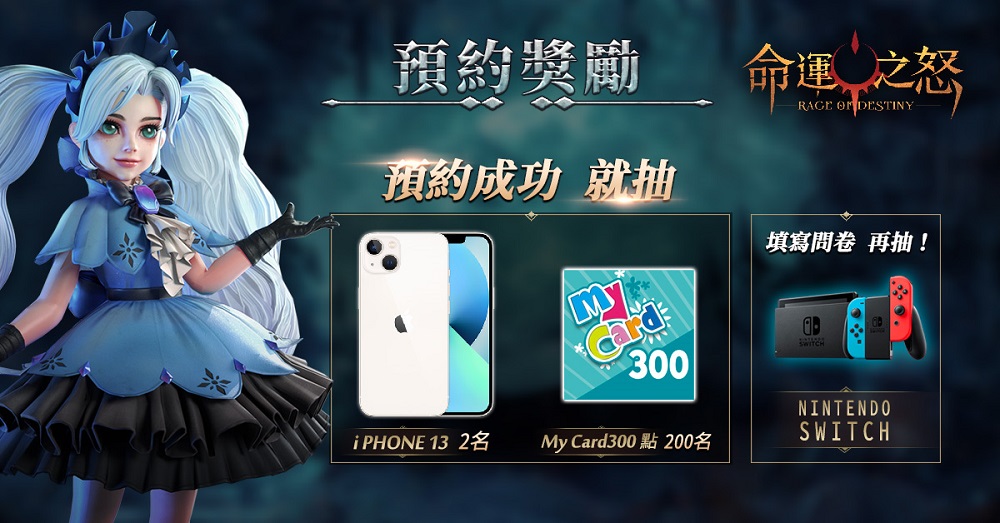《命運之怒》正式啟動事前預約,只要達指定預約人數,就能解鎖各種豪華福利,再抽最新iPhone 13手機!此外,填寫問卷更有機會抽中Switch,快邀好友一起參加預約活動,解鎖最終獎勵,展開全新的命運之旅吧!詳細活動內容敬請關注官方粉絲團。