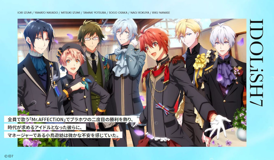(由左至右:和泉一織/和泉三月/二階堂大和/四葉環/七瀨陸/六彌凪/逢坂壯五)