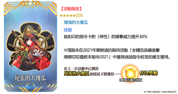 《Fate/Grand Order》繁中版舉辦「復刻:全體信長總進擊 嘮嘮叨叨最終本能寺2021 輕量版」 |