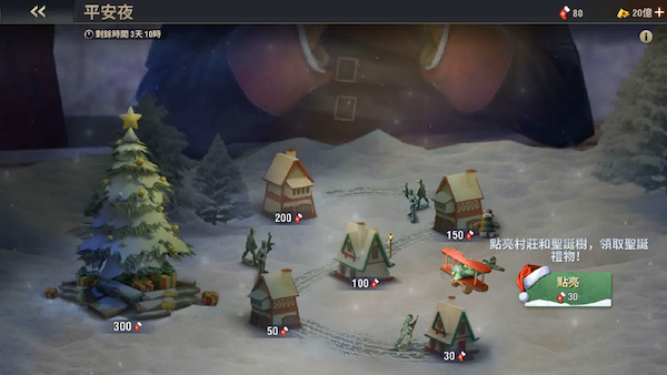 進行採集、空投、黑市購物等活動蒐集聖誕襪,再使用聖誕襪點亮小鎮的屋子,即可獲得多項聖誕禮物,點亮最終的聖誕樹就贈送活動限定基地裝飾。