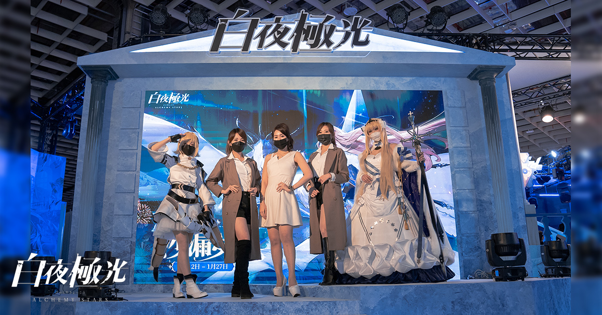 《白夜極光》於2022台北國際電玩展與玩家們見面,特地將舞台打造成北境場景,並邀請知名COSER裝扮成新角色北境女王「伯利恆」及最受歡迎的角色「薇絲」於活動中華麗登場,與現場玩家們進行互動,除了遊戲問答,還有刺激的遊戲關卡PK及有趣的小遊戲,送出人型抱枕、人型立牌、杯墊、明信片套組、鑰匙圈等精美周邊,一天6場的舞台活動,吸引大批玩家熱情參與。此外,玩家們至試玩區體驗遊戲魅力後也可獲得限量胸章,而在展期期間,每日都有早鳥禮,前30名的玩家可獲得10萬白夜幣及人型抱枕,前31-50名可獲得10萬白夜幣。海量的贈品及福利,讓玩家盡興並滿載而歸!