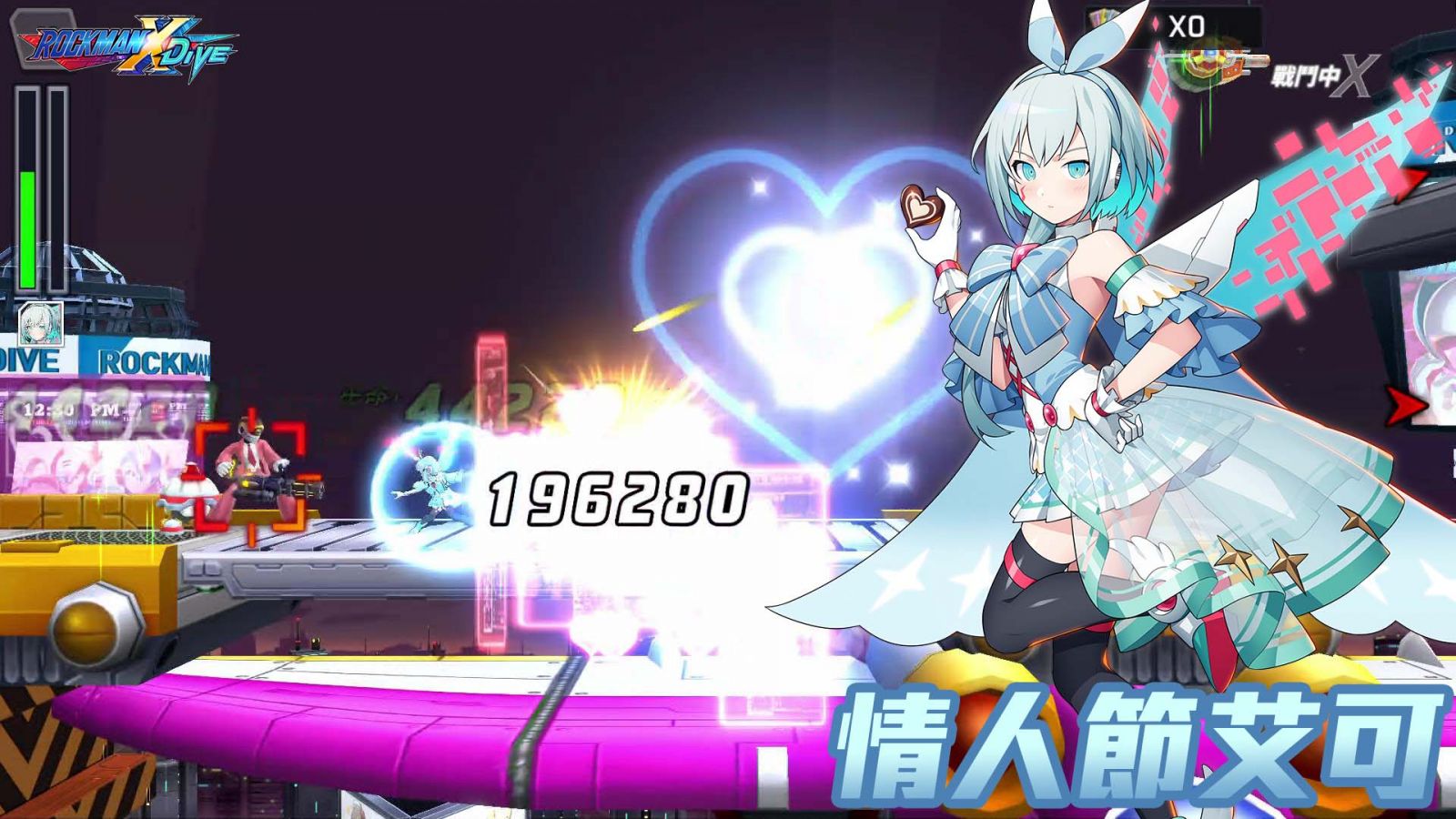 在《ROCKMAN X DiVE》裡,負責導覽工作的莉可是玩家們最熟悉不過的角色了,而在本次情人節活動期間以削肩、短裙的造型出現,帶給大家耳目一新的感覺!配合了本次限定活動的的主題,技能設計方面也跳脫出以往的數位感!第一招「緞帶連結」是射出彩帶與目標進行連結,在連結的同時給予對方傷害。而隨著距離的長短,自身也會獲得無敵狀態或是帶給目標持續性的傷害;第二招「粉絲服務」則是釋放出資訊窗對前方敵人進行攻擊,同時還會施放出額外的草莓巧克力進行攻擊。「情人節莉可」的優勢在於遠程攻擊,不僅還能回復HP同時也能造成對手失控狀態。