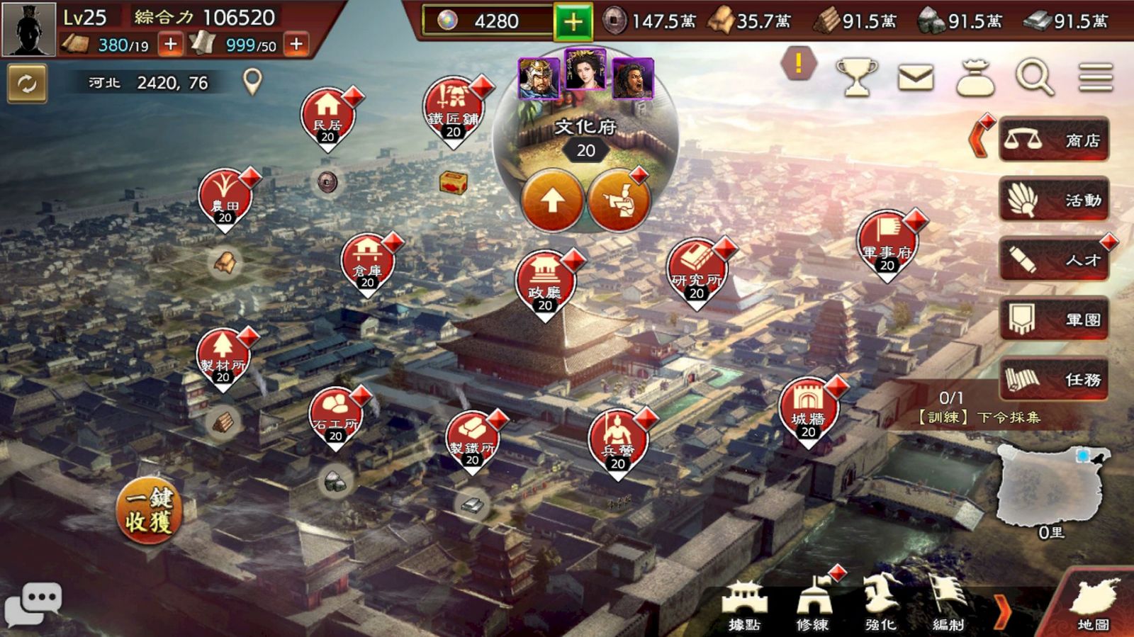 除了推出最新武將之外,此次改版釋出全新遊戲內容-異族來襲,玩家將以軍團為單位,擊退6個不同的異民族!設置軍團據點,與軍團員同心協力擊敗接踵而來的異族部隊與要塞;而參加戰鬥就能獲得異族Pt,可用此Pt來兌換「異文化寶物」等報酬。