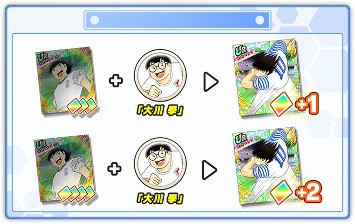 新增超越極限的方法為,目標對象和與其同名的球員超越極限須達3階段以上,使用稀有度 UR 的轉蛋限定球員和新道具「大川 學」即可進行。