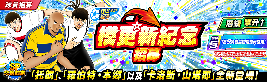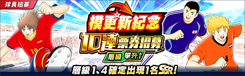 招募為層級攀升形式,在第3層級確定可獲得1位SSR球員,第5層級確定獲得1位SSR新球員!