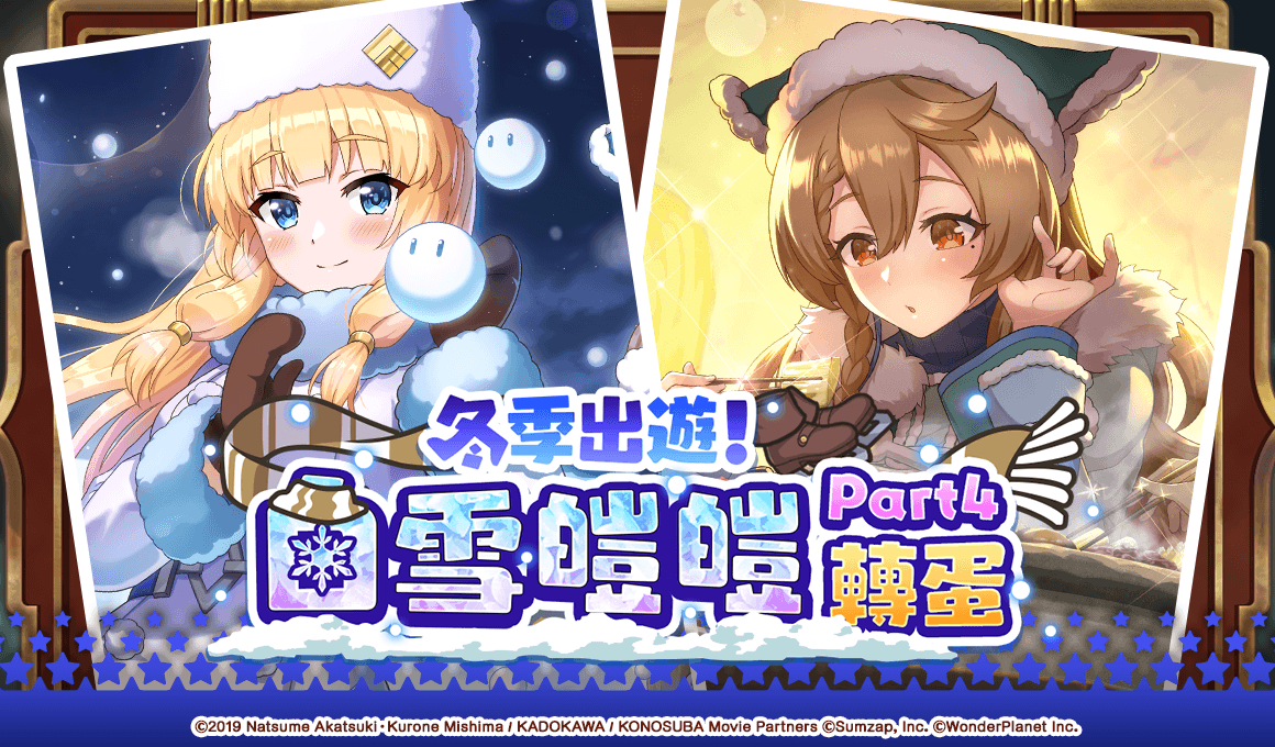 2022年4月21日(四)起,將舉辦「冬季出遊!白雪皚皚轉蛋 Part4」。賽西莉和艾咪會將穿著冬季套裝以★4隊員之姿登場。各位玩家可千萬別錯過這次機會,入手本次的稀有角色喔!