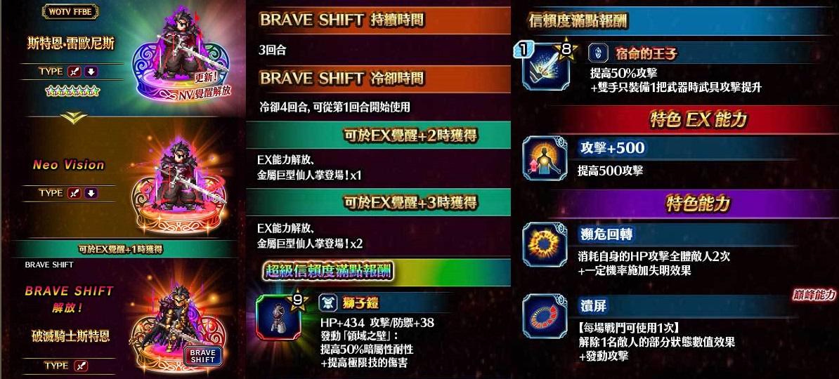 - 《FFBE 幻影戰爭》合作活動: 為了這一瞬:玩家只要收集「WOTV FFBE合作抽獎箱召喚券」進行召喚,就可以獲得1名★5『蒙特·雷歐尼斯』,與可將『斯特恩·雷歐尼斯』覺醒至Neo Vision的覺醒素材!此外,還可以從抽獎箱召喚中獲得「火業戒指(WOTV FFBE) 」、「睡眠劍(WOTV FFBE) 」,以及「火舌(WOTV FFBE) 」等活動限定裝備與配方!