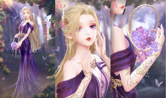 繁枝纏繞,碩果累累,愛神將豐收的喜悅與沈醉的愛記錄於設計之中。紫色的寶石如同成熟的果實鑲嵌其中,柔滑的輕紗勾勒出動人的姿態。如同尋找愛情遺落在人間的蹤跡,只留下馥郁的甜香縈繞在側,久久未曾散去。
