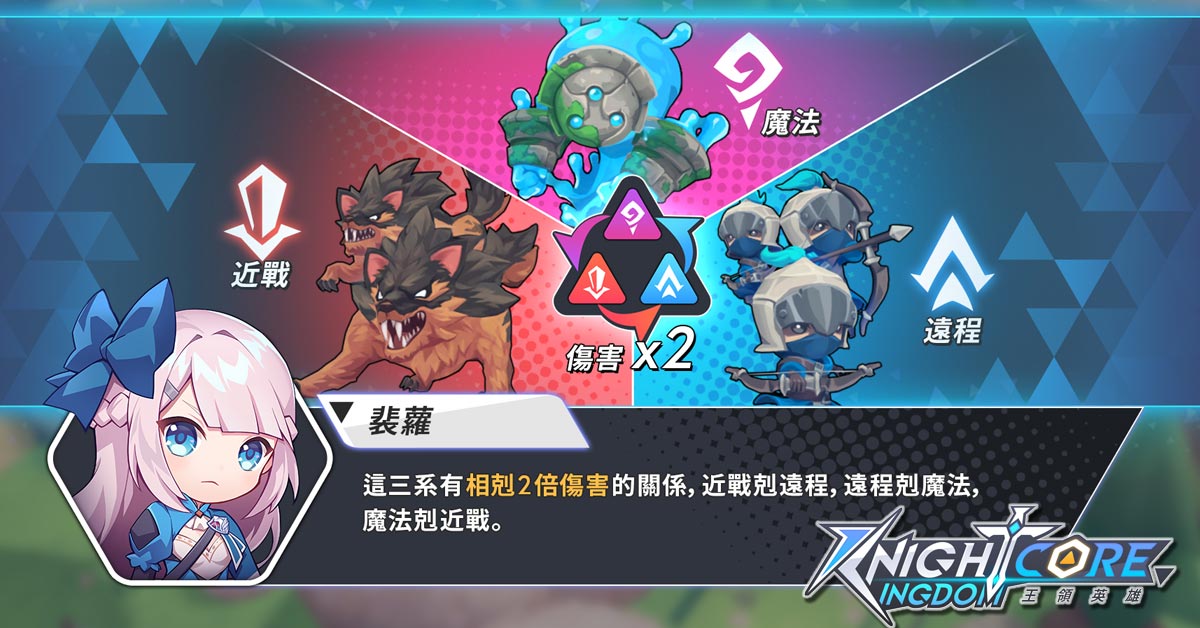 英雄與兵種都有各自的定位,遊戲中分為坦克系、近戰系、遠程系、魔法系、治療系共五種。由於SLG策略玩法很講究兵種間的相剋,《王領英雄》也不例外,但是簡化了數量,設計成三角相剋的方式方便玩家記憶。其中近戰系剋制遠程系;遠程系剋制魔法系;魔法系剋制近戰系,能夠對目標造成極高的傷害。至於坦克系與治療系則沒有相剋,主要負責隊伍的防禦、吸收砲火以及治療等工作。