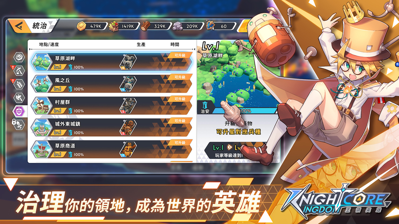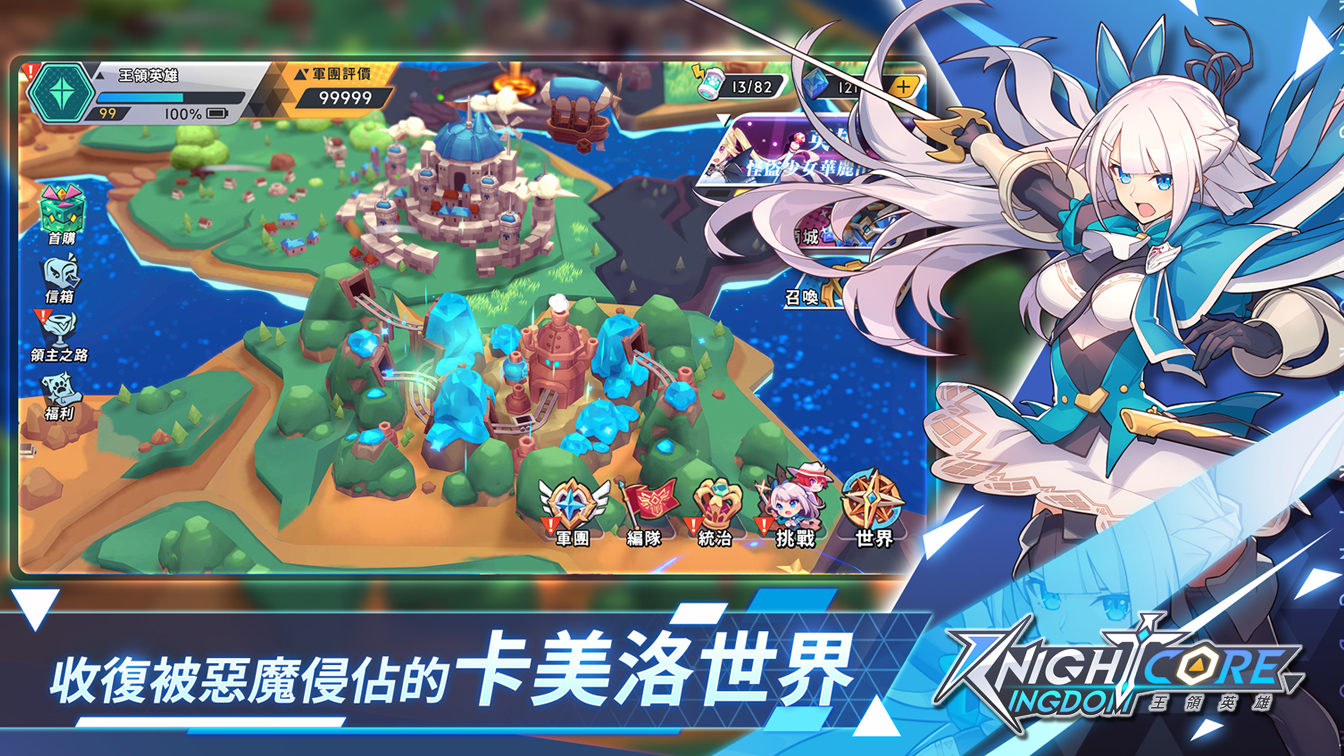 例如收復飼養馬匹的風之丘,就能夠開始訓練「騎士」這個兵種。投入建設資源將風之丘的等級提升,那麼「騎士」兵種的等級也會提升,也會學習到新的技能。所以玩家要逐步重建卡美洛世界,隨著主線的進行,將能夠得到數十種兵種。要專注投入資源培養哪些兵種,就端看玩家的玩法需求了。