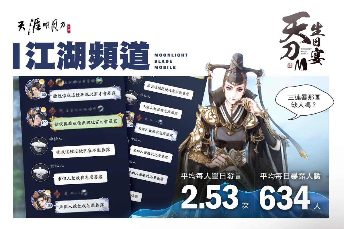 「天刀M生日宴」將於 06 月 11日開啟第二階段活動「一載天涯」,多項主題活動、限定稱號與大量珍稀虛寶要獻給各位玩家,完成指定任務還有機會獲得一週年紀念周邊商品;此外,營運團隊也特別公布了這一年來,玩家達成的各種趣味數據,包含江湖頻道暴露人數、結同心成功機率、最熱門單人動作與最多求贈道具…等,與各位少俠一同憶載天涯。