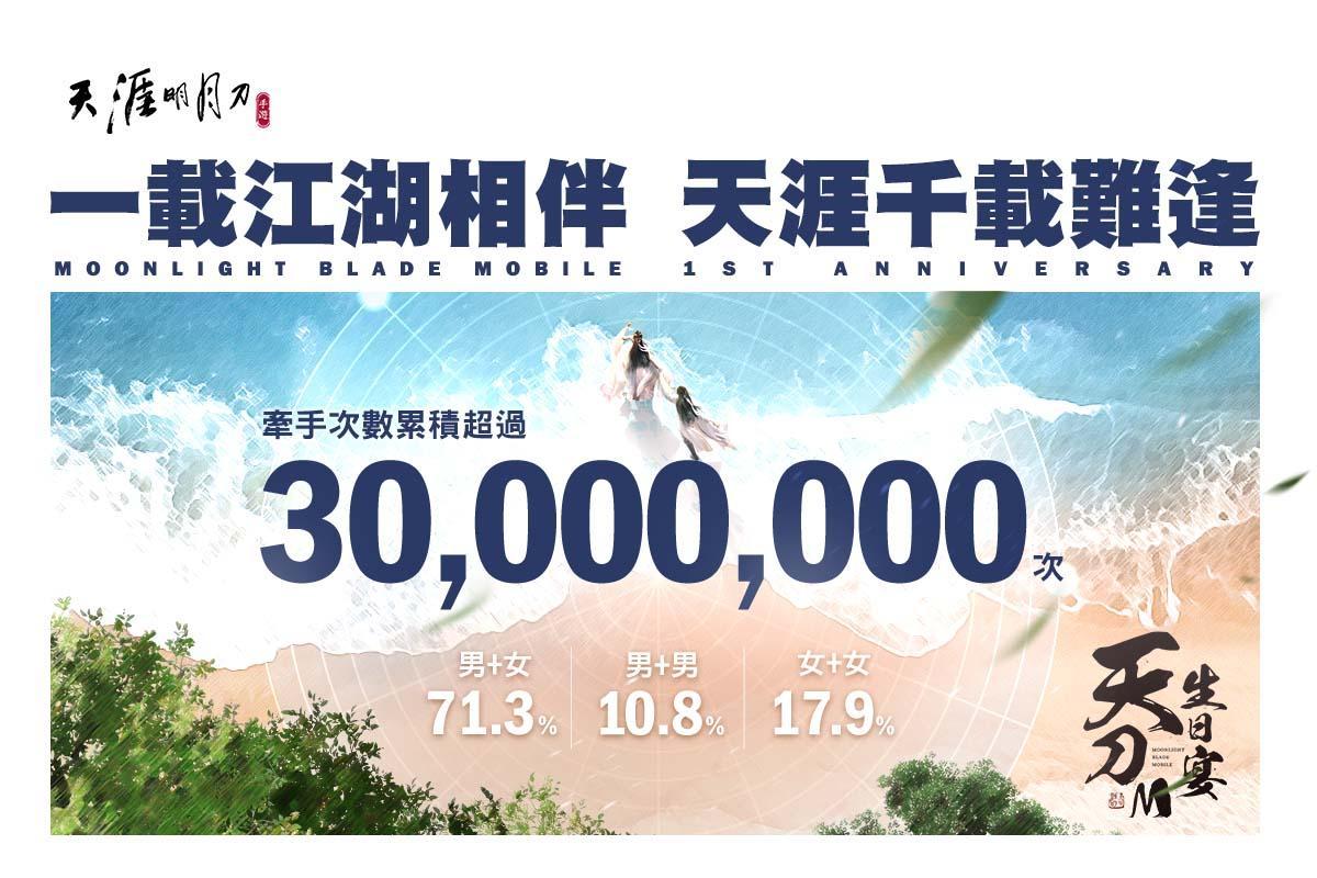一週年數據回顧,牽手次數突破 3,000 萬次!