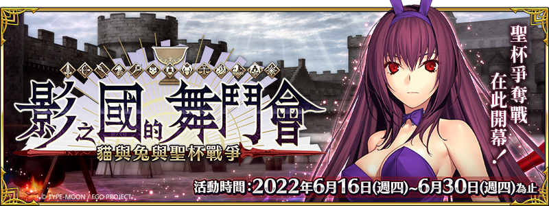 日本超人氣手遊《Fate/Grand Order》繁中版(中文名:命運-冠位指定,以下簡稱《FGO》繁中版)將在6月16日(四)限時舉辦「影之國的舞鬥會 ~貓與兔與聖杯戰爭~」,並實裝斯卡薩哈〔Lancer〕全新靈衣。在此之前,「幕間物語紀念活動 第14彈」將於6月14日(二)搶先開放,邀請御主們上線參與。