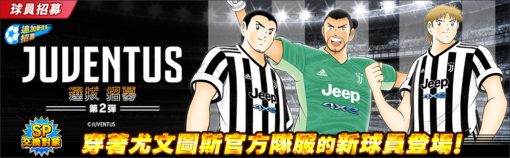 穿著尤文圖斯正式比賽隊服的薩瓦多雷・尚帝雷、羅曼・巴卡斯、特瑞薩加,將作為新球員登場。在層級招募中,在第3層級將確定可獲得一名SSR球員,第5層級則將確定獲得一名SSR新球員!