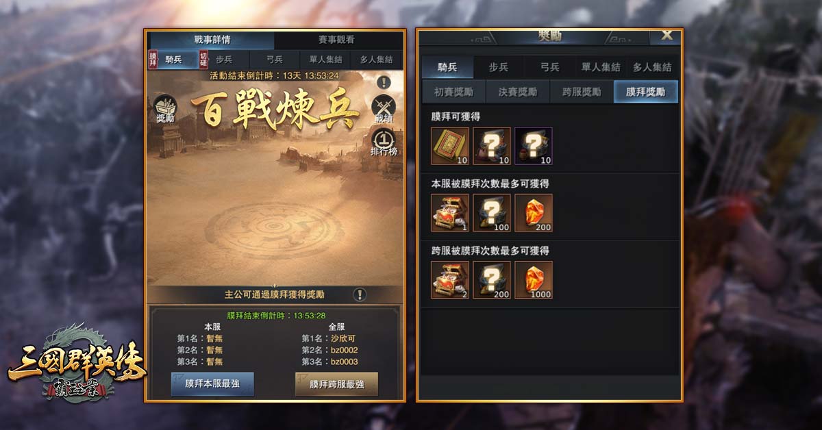◆【百戰煉兵】全新伺服器的比拚活動,透過自動對戰角逐各兵種執牛耳。