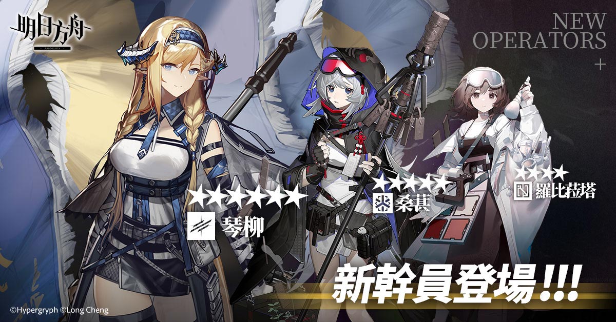 本次將迎來 3 名全新幹員,分別為六星先鋒幹員「琴柳」,五星醫療幹員「桑葚」,四星輔助幹員「羅比菈塔」。
