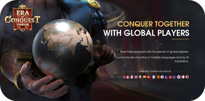 《文明與征服:Era of Conquest》將在全球200多個地區同步上線,不僅可支援手機、電腦、主機端等多平台設備無縫暢玩,並提供英語、中文、韓語、德語、日語、法語、西班牙語、阿拉伯語等19種語言,實現全球玩家同服激鬥,帶你體驗真正的「世界競技」!