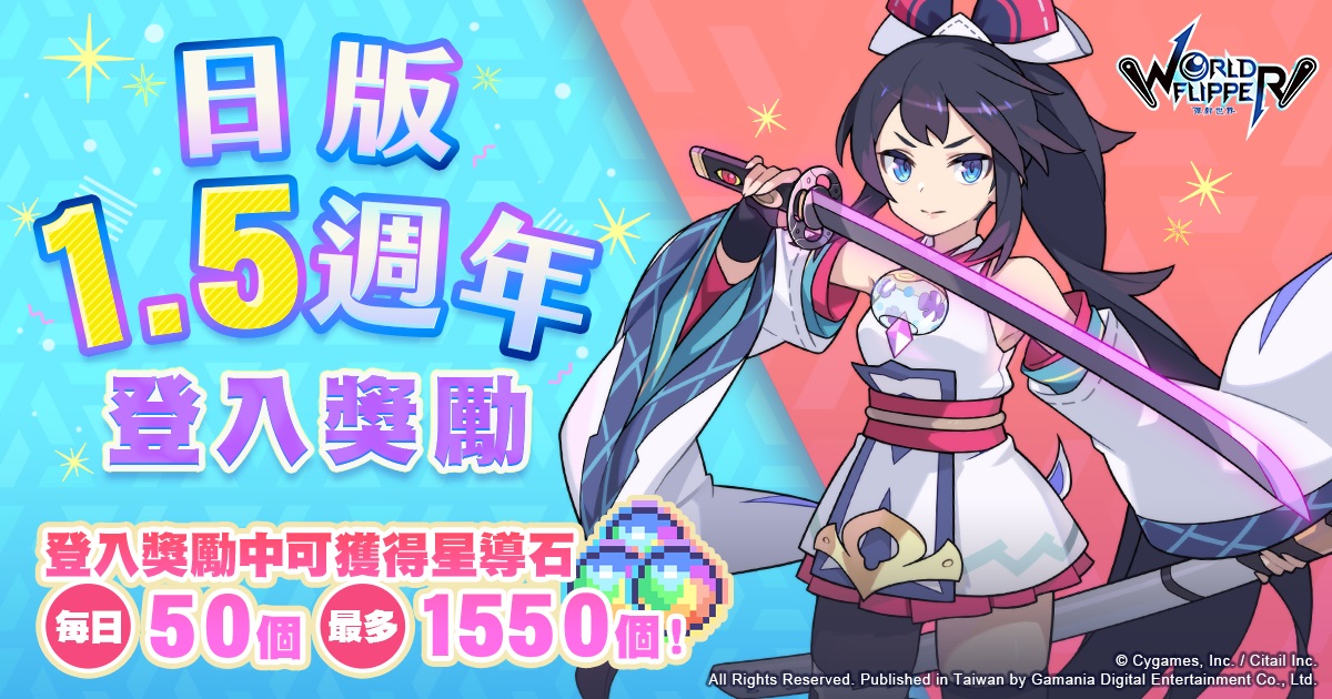 遊戲橘子代理、日本遊戲大廠Cygames與子公司Citail共同研發的全新彈珠台動作RPG手遊《彈射世界》將於6月29日歡慶【日版1.5週年紀念日】,官方特別祭出:【紀念禮物】全體玩家獲得1,500個星導石及★5星鐵鋼*1、【紀念登入活動】最多可獲得1,550個星導石、劇情活動【HERO:BEGINNING】可獲得活動限定裝備道具、【新角色精選轉蛋】即將登場。與繁中版玩家同慶!