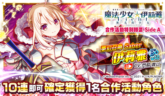 《Crash Fever》×《魔法少女☆伊莉雅》合作活動第二彈登場! 「夢幻召喚 Saber 伊莉雅」及其他『魔法少女☆伊莉雅:Licht』中的多名角色,將在虛擬世界ALICE登場!!