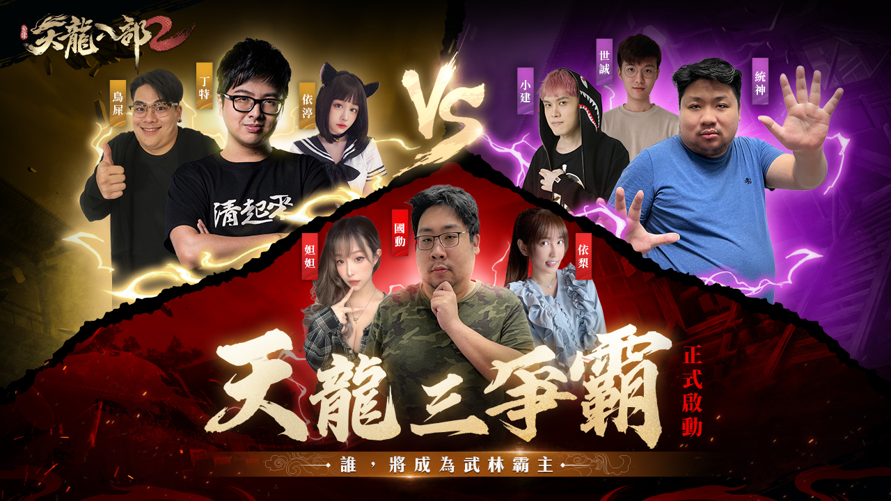 由艾玩天地所代理的金庸首款空戰武俠MMO大作《天龍八部2》手遊本日宣佈正式掀開「天龍三爭霸」的序幕,官方邀請重量級實況主統神、丁特及國棟分別領軍帶隊,將於《天龍八部2》手遊正式上線後直播展開激烈對決,玩家可先速速加入應援,並進入專屬Line群與實況主們互動!本日同步釋出“絕學系統”介紹,讓玩家提前感受各門派經典絕學,打造適合自己的戰鬥模式!《天龍八部2》手遊雙平台預註冊火熱進行中,完成預註冊就能獲得《天龍八部2》手遊與人氣貼圖「胖虎」的聯名坐騎!