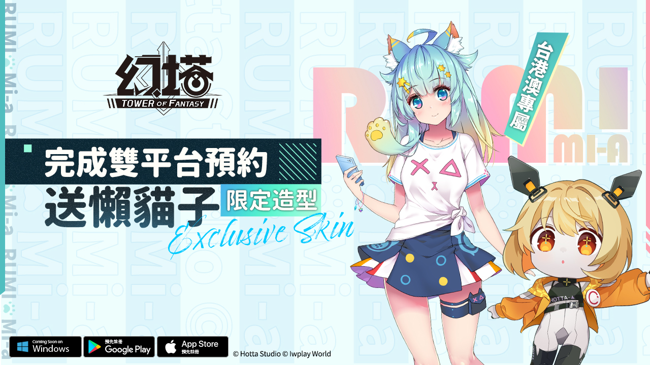 研發團隊非常重視台港澳玩家,除了要帶給玩家最好的遊戲品質外,也特別與在台港澳擁有高人氣VTUBER「懶貓子Rumi」進行合作,玩家完成雙平台預註冊後,將可在遊戲中使用專屬的捏臉造型及時裝外觀!