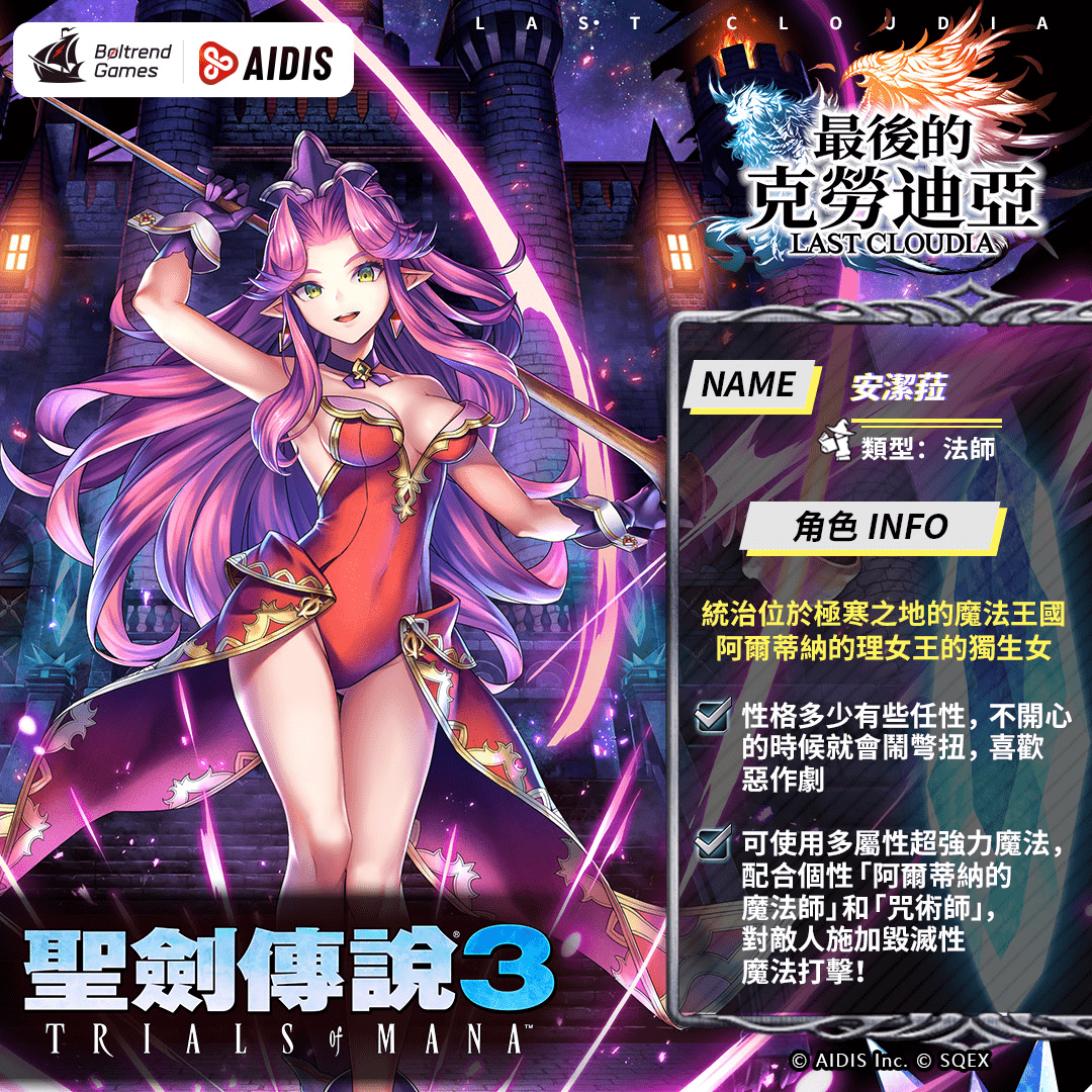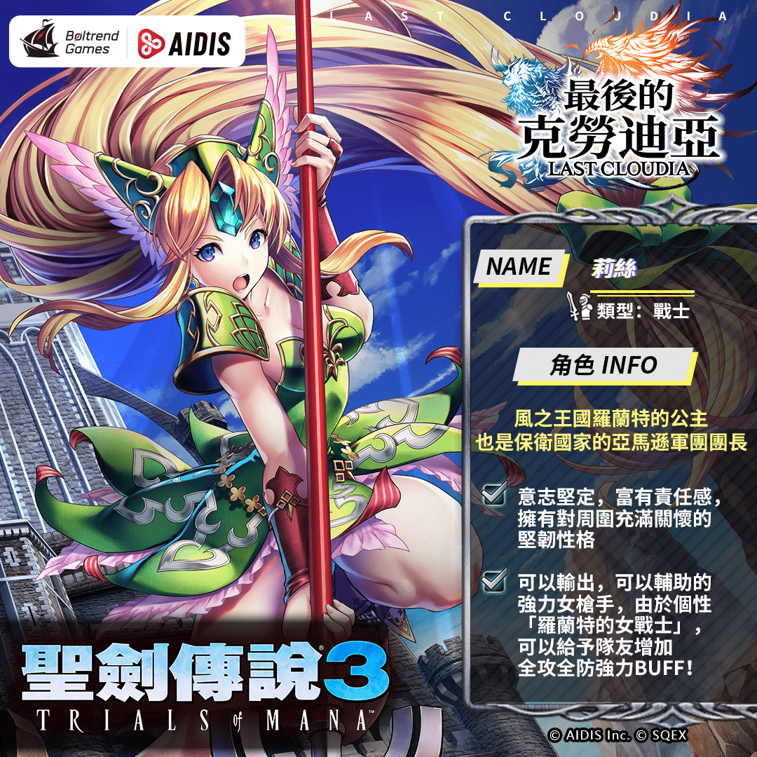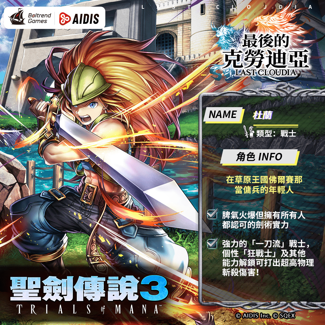 由香港商 Boltrend Games於今日(22)宣佈,旗下代理的像素動作手遊《最後的克勞迪亞》將於 8月3日起正式展開由Square Enix製作發行的動作冒險遊戲《聖劍傳說3》的聯動合作;今日於遊戲內開啟專屬福利集氣活動,這一定是喜愛像素風格、高張力戰鬥場面的冒險者絕對不能錯過的經典之作!