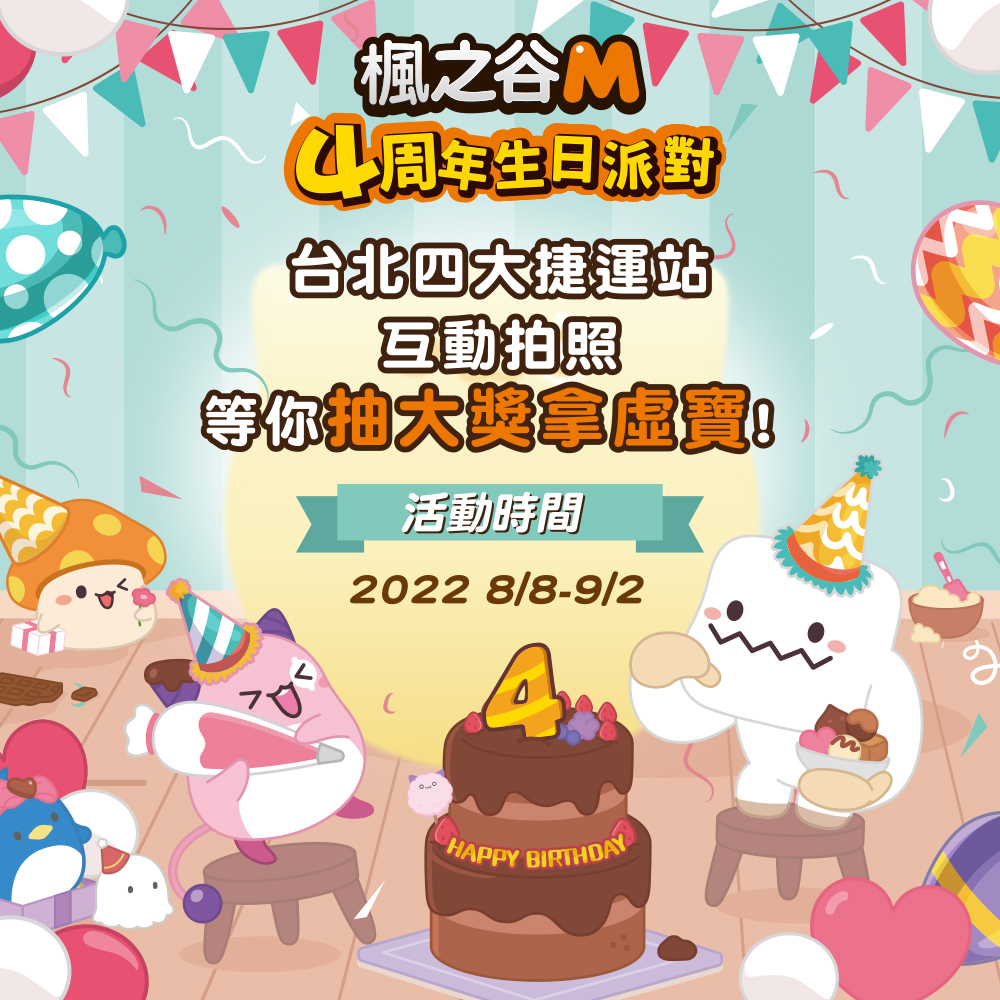 同樣是為了歡慶《楓之谷M》4歲生日,官方在8月8日起於台北捷運(101/世貿站、中山站、忠孝新生站、公館站)推出四周年限定活動,玩家將可以透過活動獲得豐富的遊戲內虛寶以及iPhone13、HyperX Cloud Alpha S 聯名限定款耳機,想知道更多相關活動消息後續消息,可至《楓之谷M》官方粉絲團查詢,請有興趣回谷的玩家千萬別錯過這次大好機會!