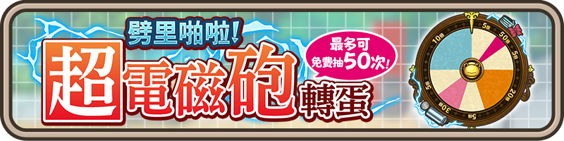 2022年7月29日(五)起,活動期間內每日登入遊戲時,劈里啪啦!超電磁砲輪盤轉出幾次,即可抽取幾次劈里啪啦!超電磁砲轉蛋!