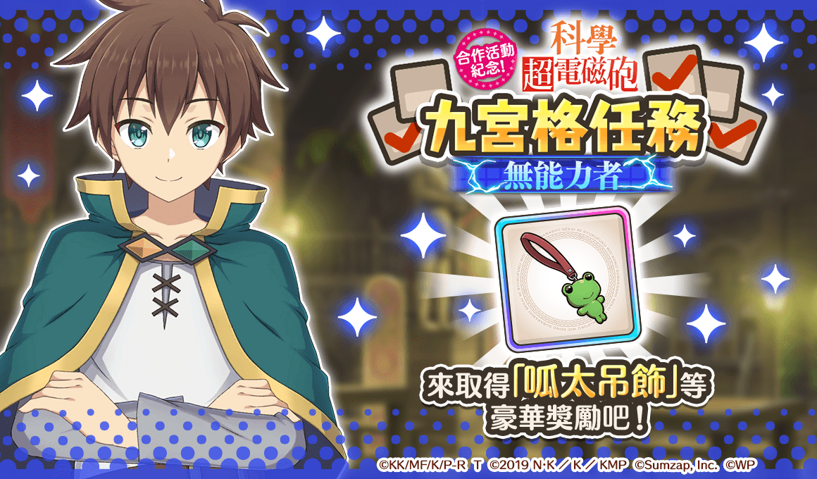 致力發展數位娛樂服務的 WonderPlanet Inc. (所在地:日本,總公司:愛知縣名古屋市,CEO:常川友樹,東證Growth:證券代碼4199,以下簡稱「本公司」),由本公司發行及營運,改編自人氣動畫『為美好的世界獻上祝福!』首款手機遊戲『為美好的世界獻上祝福!Fantastic Days』(以下簡稱『美好世界FD』),將於2022年7月29日(五)起舉辦「美好世界FD×科學超電磁砲合作活動」,特此告知。