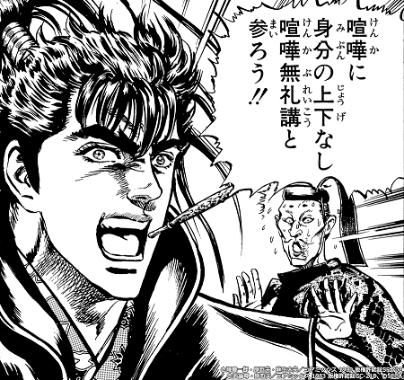 做出無視身分高低的場面,盡情和不喜歡的人互毆,身為戰場之人的男人們野蠻的宴會。