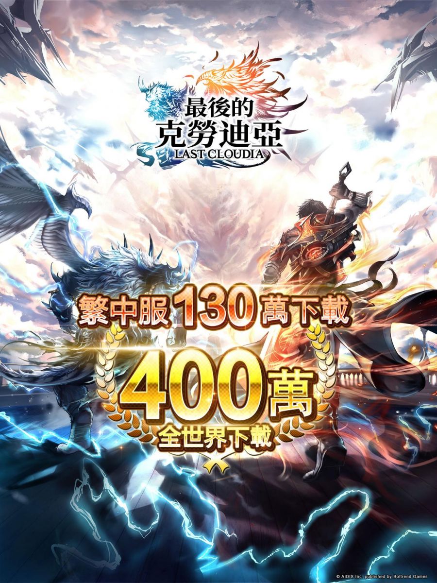 香港商Boltrend Games負責發行的《最後的克勞迪亞》中文繁體版從2021年1月上線後用戶數一直穩定成長,iOS・Android版、PC Steam版本累計下載量已經突破了130萬人,讓更多的玩家體驗到了本作的樂趣,銷量成績也非常優異。今後AIDIS將持續加深與Boltrend Games的合作,期待中文繁體版與日語版、英語版一樣繼續熱賣。