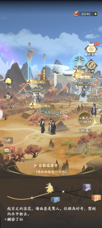同時在遊歷過程中大家可能會觸發【奇遇】事件,就是說將會遇到三次選擇事件。選擇正確的選項每次會新增40機緣,錯誤選擇則獲得0機緣。三次選擇正確就能達成完美結局,獲得【奇遇寶匣】、草藥等物品。筆者就很幸運地打開了【奇遇寶匣】並獲得了功法書。