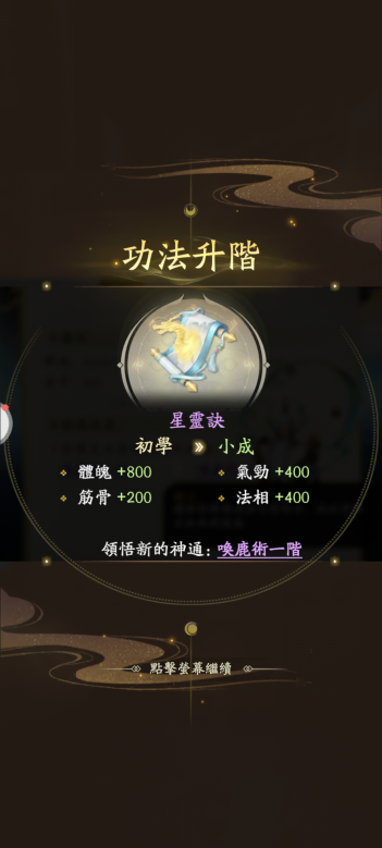 不同的功法對應使用不同的功法書,在遊戲裡功法書又會分為:上品功法、珍品功法、絕品功法,最高級別是可以把功法書修練到大圓滿哦。此外參悟不同的功法書還能獲得不同功法裝配,一共分為神通、心法、絕招三類,不同裝配能打出不一樣的效果哦,這個就很考驗道友們的搭配了。