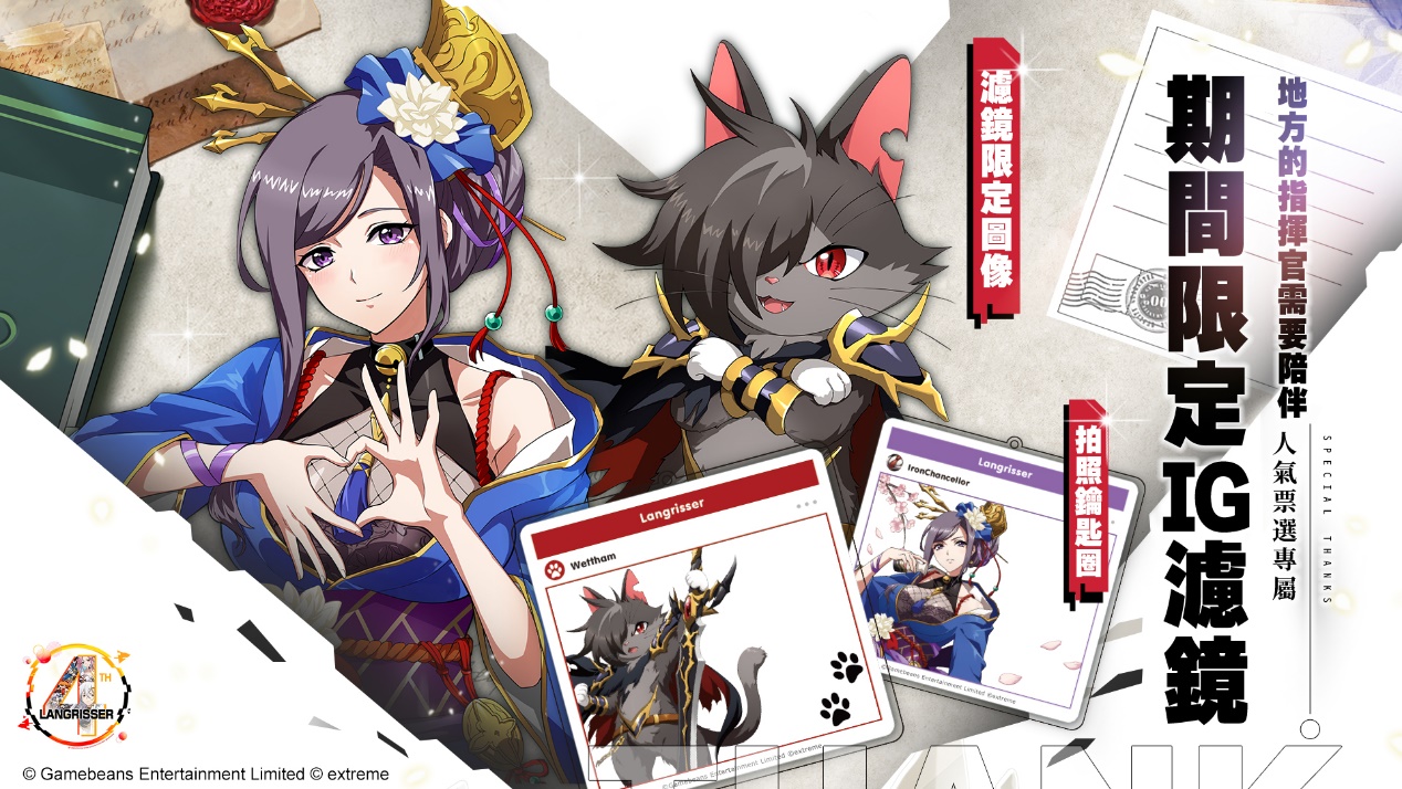 憑藉中二的發言、強悍的戰鬥力,最重要的是可愛到犯規的貓咪外觀,維坦獲得了壓倒性的勝利,至於第二名則由性感與霸氣兼具的鐵血總帥奪得!《夢幻模擬戰》團隊也將票選結果特別製作成期間限定IG濾鏡以及精美角色周邊,請喜愛兩人的指揮官們敬請期待!