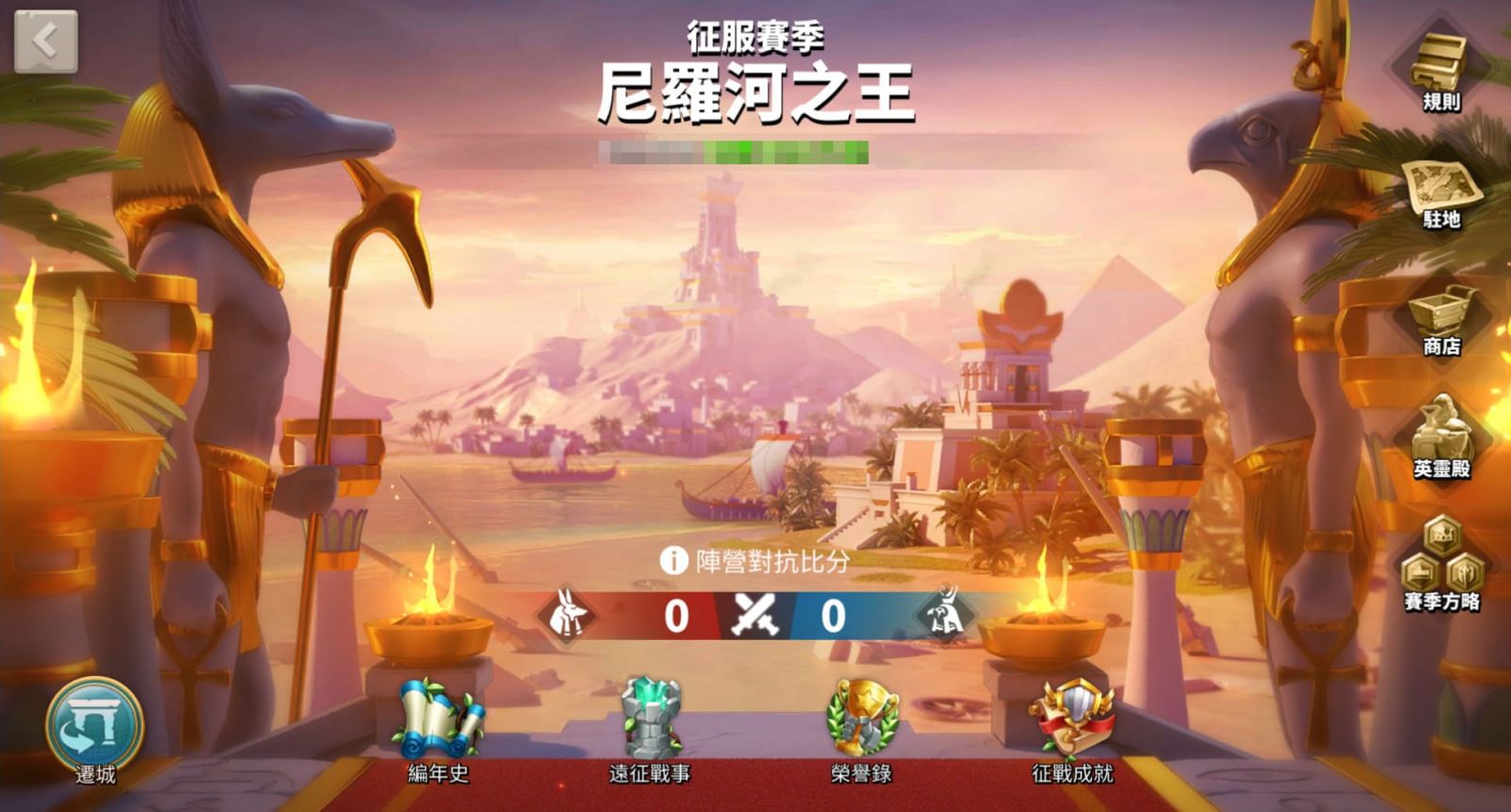 劇本「尼羅河之王」分為賽特、荷魯斯兩大陣營展開對抗,除了全新失落之地地圖,也引進賽季方略系統,讓執政官自由制定方略路線。方略由「先鋒主宰」、「戰鬥熱忱」、「勤勉巧匠」三大系列組成,能賦予玩家採集、打野、引領戰場等不同增益效果,使用賽季中獲得的方略點,選擇喜愛的方略進行發展,探索最適合你的方略路線吧!