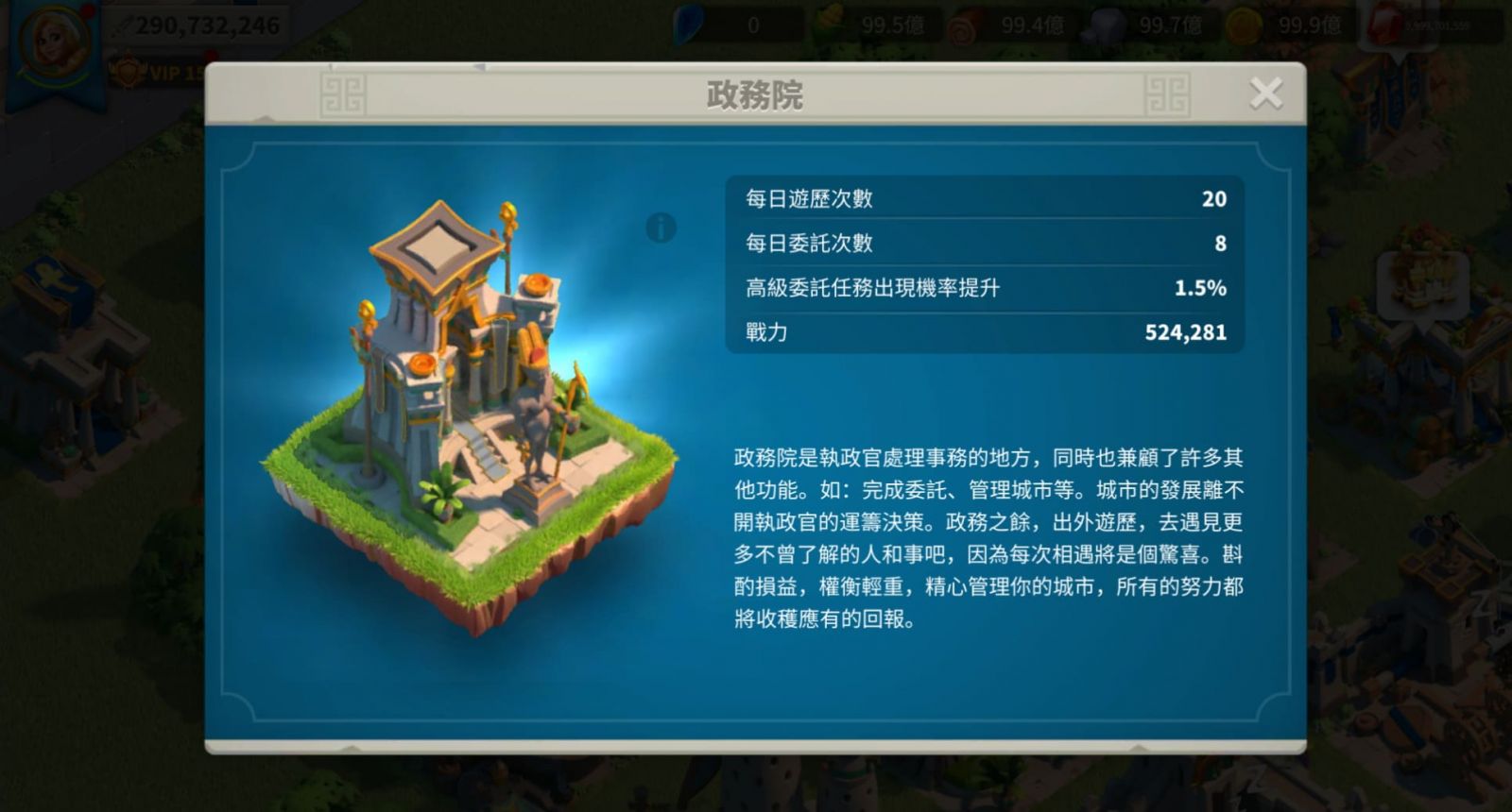 本次改版新增城市建築「政務院」,執政官建設政務院後,能與統帥一同出外遊歷,展開冒險獲得獎勵,也能派遣統帥完成委託,贏得多樣陣型軍器。