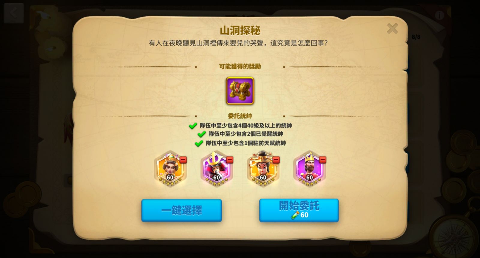 政務院還可執行「委託」,依照委託需求派遣符合條件的統帥,消耗指定行動力,完成委託就能獲得對應獎勵。累積達成15項委託,還能開啟一份額外謝禮。即刻升級政務院,完成更多委託享受豐盛好禮!