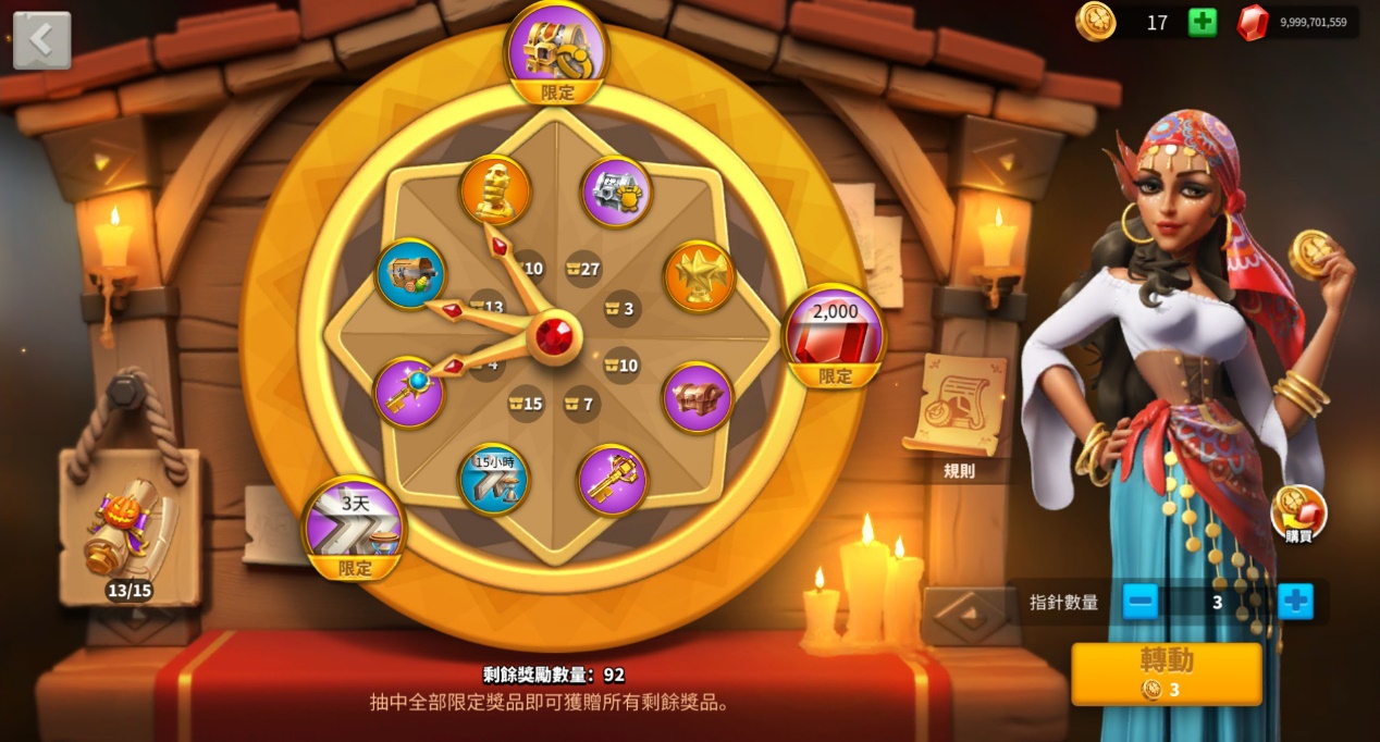 使用愛斯梅拉達的許願幣,轉動幸運輪盤抽出多重好禮,輪盤轉動愈多次,還能解鎖更多額外獎勵!