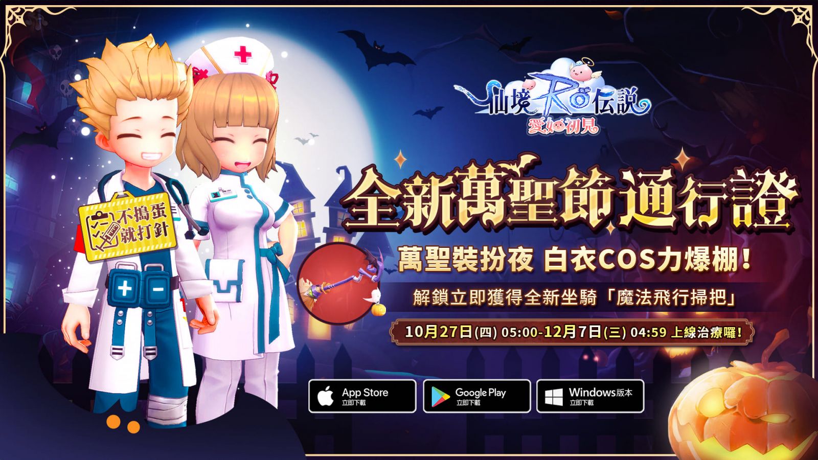 ⑧萬聖節通行證(10/27——12/07):解鎖全新萬聖節通行證,可獲得坐騎「魔法飛行掃把」及時裝「醫生cos裝」或「護士cos裝」等豐厚遊戲道具。