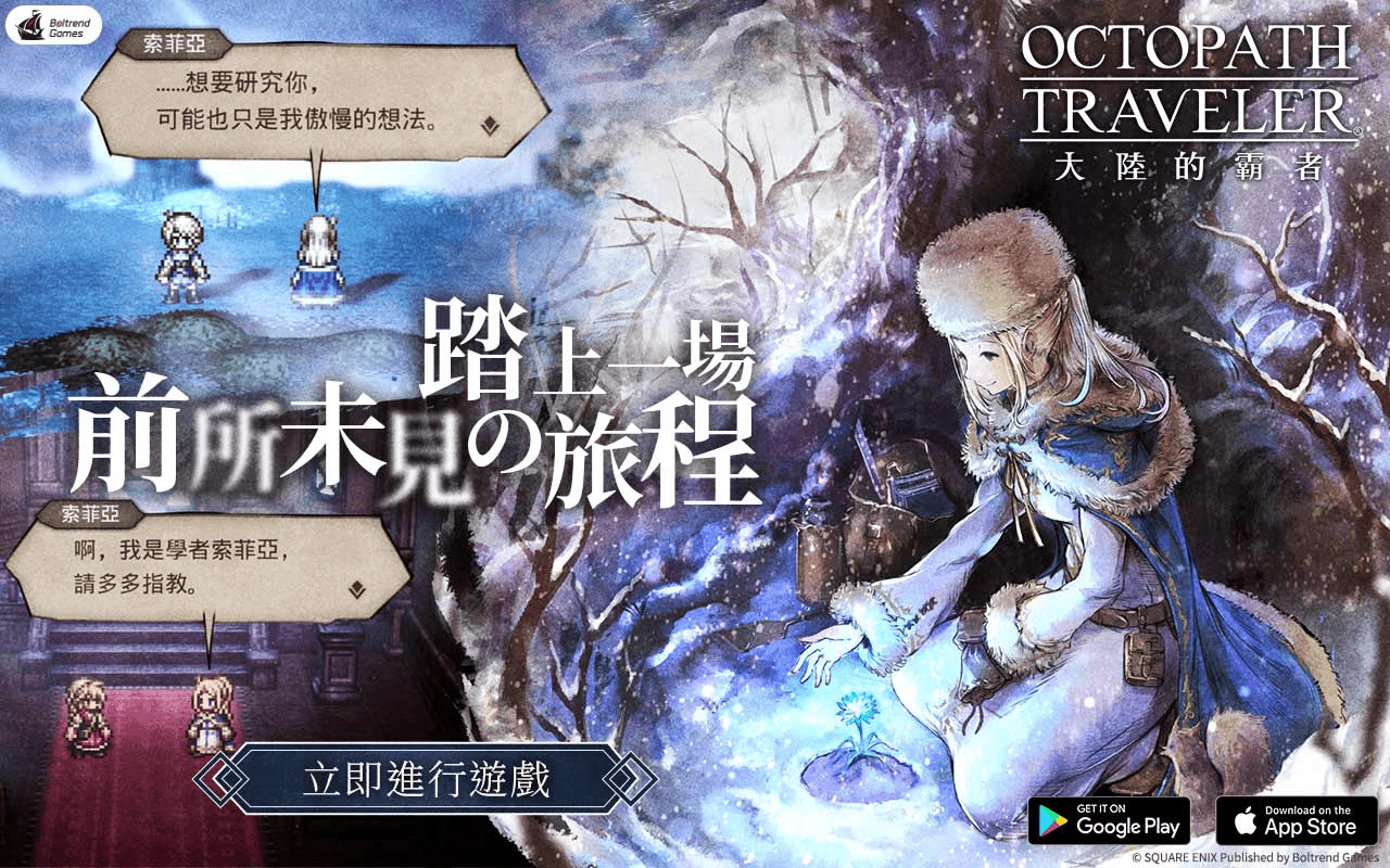 Square Enix正版授權,日本殿堂級像素JRPG 《歧路旅人:大陸的霸者》 繁中版今(29)日正式上線,各位旅人們可以在AppStore及GooglePlay搜尋“歧路旅人:大陸的霸者”下載遊戲App,也可以前往官方網站直接下載進行體驗。